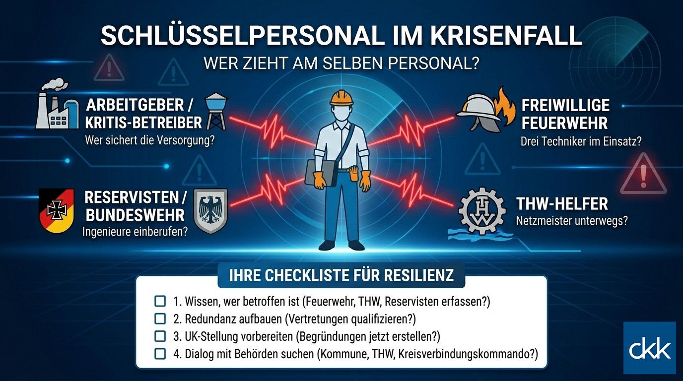 Es gibt derzeit kein koordiniertes Verfahren, das die Bedarfe von KRITIS-Betreibern, Bundeswehr, THW und Feuerwehr systematisch abgleicht. Jeder zieht am selben Personal.